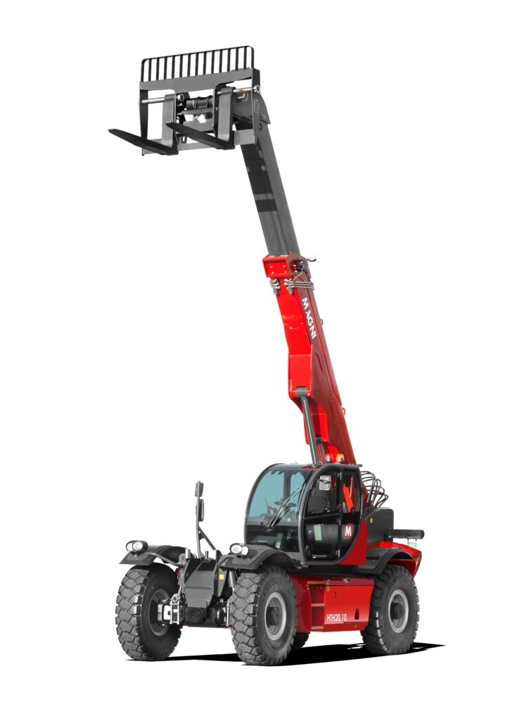 The HTH 20.10 telehandler is ideal for safely handling large, bulky loads. It can lift up to 20 tons and is compatible with a wide range of attachments, making it extremely versatile. Equipped with an RFID system that ensures automatic recognition of various attachments, this telehandler is capable of meeting a wide range of applications in heavy industry. Its four-wheel drive system, three maneuvering modes, and high ground clearance make it highly maneuverable on all types of terrain.