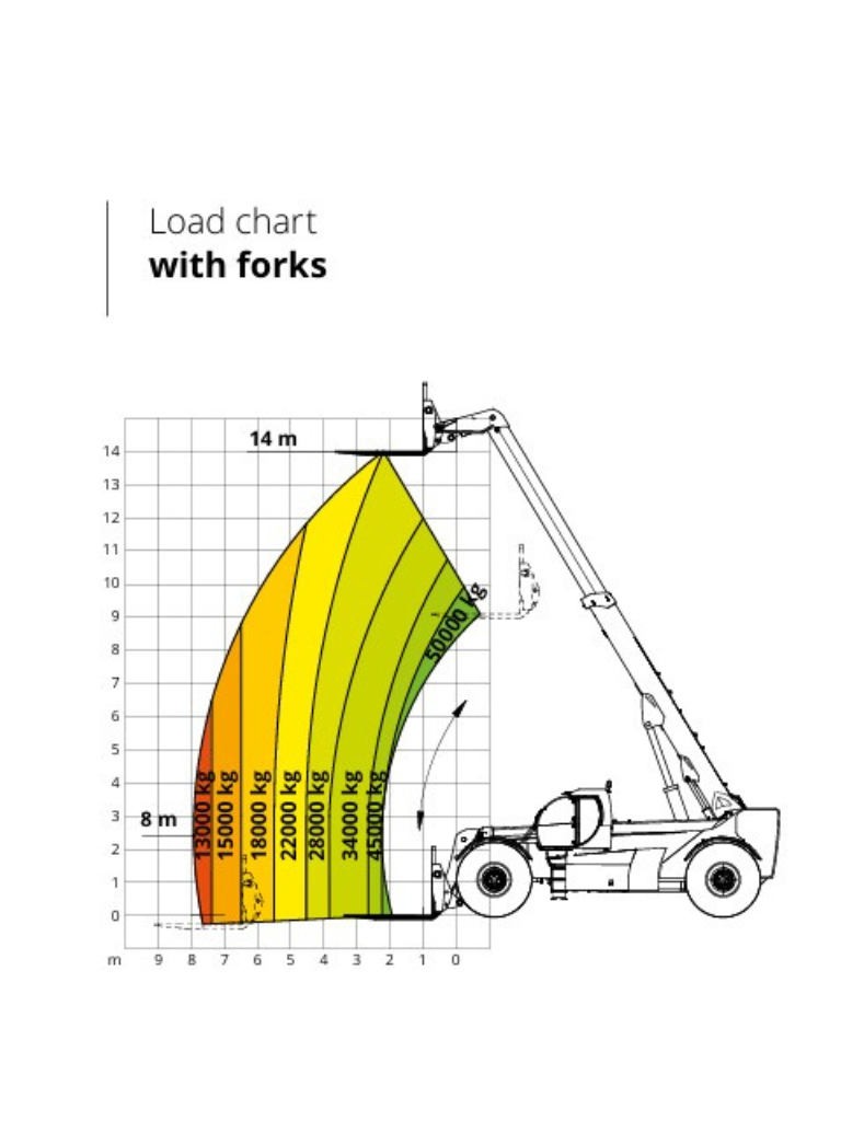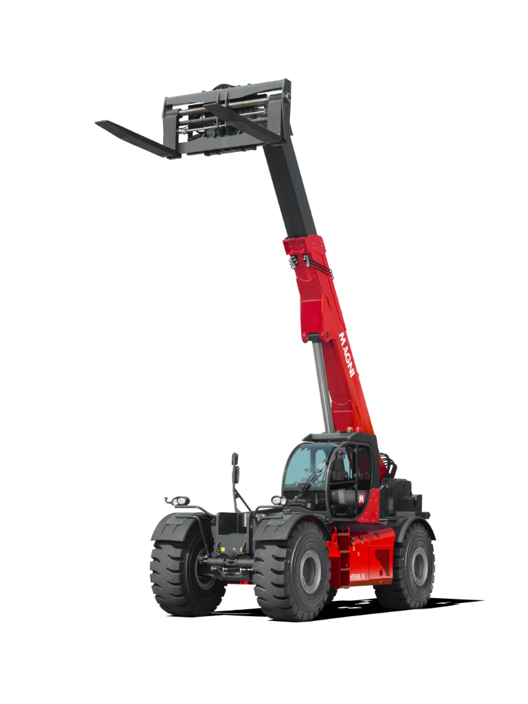 The HTH 50.14 telehandler is ideal for safely handling large, bulky loads. It can lift up to 50 tons and is compatible with a wide range of attachments, making it extremely versatile. Equipped with an RFID system that ensures automatic recognition of various attachments, this telehandler is capable of meeting a wide range of applications in heavy industry. Its four-wheel drive system, three maneuvering modes, and high ground clearance make it highly maneuverable on all types of terrain.
