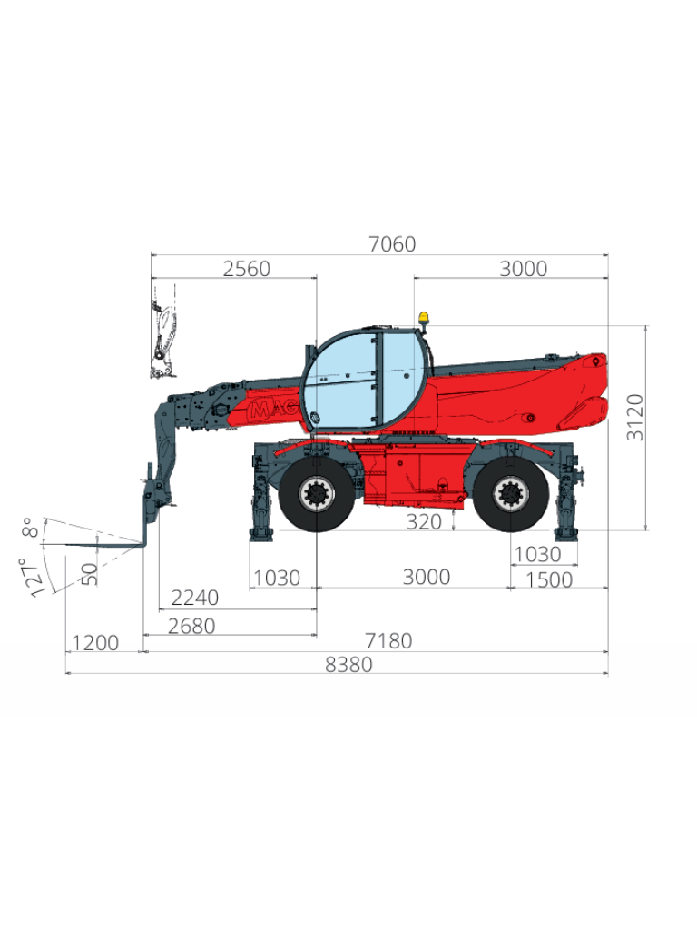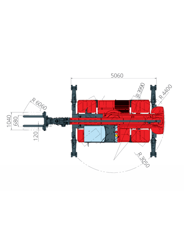 The RTH 5.23 is a compact yet high-performing rotating telescopic handler. It can lift loads up to a height of 23 meters and is equipped with folding stabilizers that guarantee stability and safety during all maneuvers. Compatible with a wide range of attachments, thanks to the RFID system that allows for automatic recognition and creation of appropriate load charts, this telescopic handler can meet various needs in construction and industry.