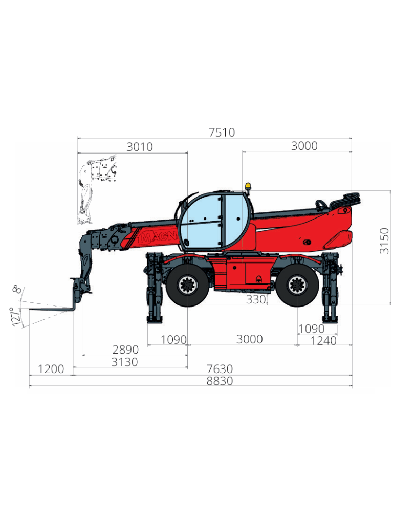 The RTH 6.25 is a compact yet high-performing rotating telescopic handler. It can lift loads up to a height of 25 meters and is equipped with stabilizers that guarantee stability and safety during all maneuvers. Compatible with a wide range of attachments, thanks to the RFID system that allows for automatic recognition and creation of appropriate load charts, this telescopic handler is suitable for use in construction and industry.