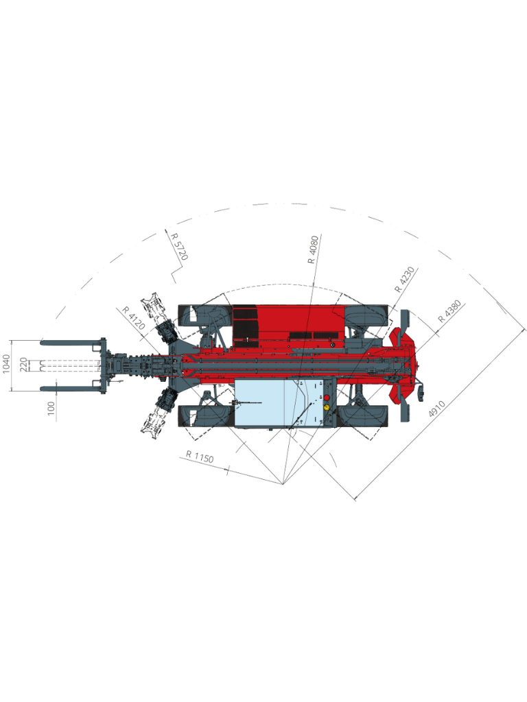The TH 4.5-19 is a fixed telescopic handler particularly suited for demanding locations in light industry. Powered by a 55 kW Deutz engine, it can safely reach a height of 18.80 meters on rough terrain, thanks to its four-wheel drive and automatic leveling system, which operates on both wheels and stabilizers. The hydrostatic transmission offers precision and maneuverability. This machine is compatible with a wide range of attachments and is equipped with an R.F.I.D system that allows for automatic recognition of attachments and the creation of relative load charts. The model features a tire leveling system that enables the operator to adjust the machine’s tilt, ensuring that the entire load chart is available for any type of operation, even when terrain tilt might otherwise affect lifting performance.