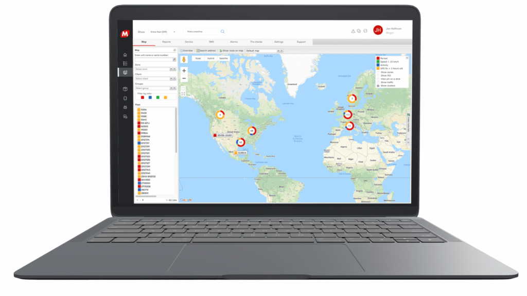 Otkrijte detaljno novi GPS sistem koji Magni teleskopski manipulatori imaju u svakoj mašini kako bi vam pomogli da upravljate i kontrolišete vašu flotu. Potpuni pregled koji vam omogućava da mapirate i pratite svaki pokret vaše flote i prikazuje najvažnije informacije na vašoj komandnoj tabli.